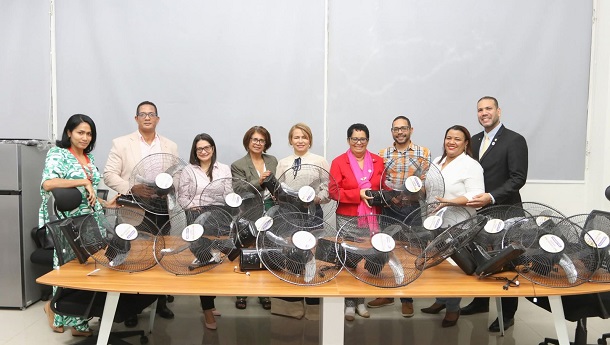 La candidata a la vicerrectoría de Investigación y Posgrado, Dra. Juana Encarnación, hizo entrega de abanicos de pedestal a la Unidad de Orientación Profesional.
