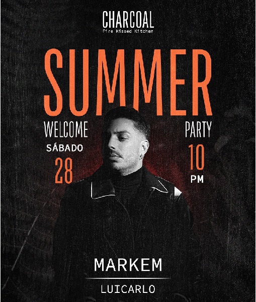 Santo Domingo, junio 2025. El restaurante Charcoal, ubicado en Santo Domingo, será el escenario de una noche inolvidable con la llegada de la esperada “Summer Welcome Party”, que se celebrará el sábado 28 de junio a las 10:00 p.m. La fiesta marcará el inicio oficial del verano en la ciudad, con la presentación estelar del reconocido DJ y productor internacional Markem, junto al talento local DJ Luicarlo.