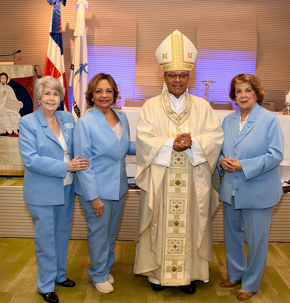 María Teresa Pérez de González, Angélica Benítez de Ginebra, Monseñor Faustino Burgos y Carmencita de Bisonó.