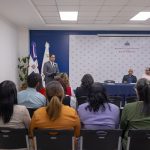 La información la ofrecen los miembros del jurado: el poeta y académico Plinio Chahín Denis Mota, representando la Biblioteca Pedro Henríquez Ureña, el poeta Fernando Valverde en representación de la editorial, y José Mármol, (presidente) con voz y sin voto.