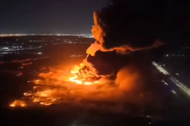 Las imágenes captaron una columna de llamas de decenas de metros de altura, y la onda expansiva rompió ventanas en edificios residenciales a varios kilómetros de distancia.