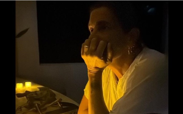 El intérprete de «El poder de tu amor» y nacionalizado dominicano compartió una fotografía sin electricidad en la casa donde se ve su a esposa, Marlene Rodríguez Miranda, en una mesa con cara de inconformidad en medio de velas encendidas.